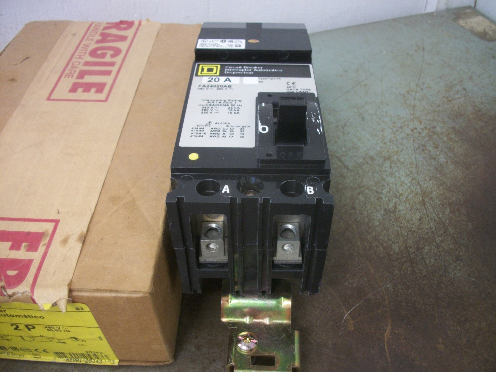 SQUARE D I-LINE FA CIRCUIT BREAKER FA24020AB 20AMP 480VOLT 2POLE GRAY NIB