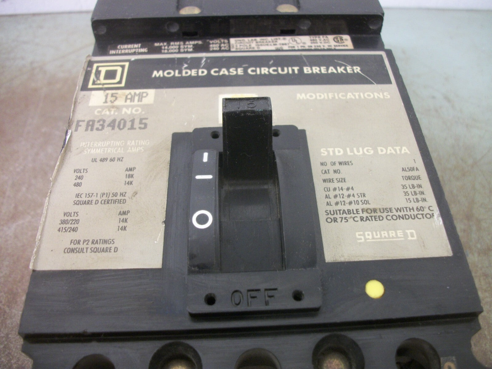 SQUARE D I-LINE FA CIRCUIT BREAKER FA34015 15AMP 480VOLT 3POLE GRAY CHIPPED