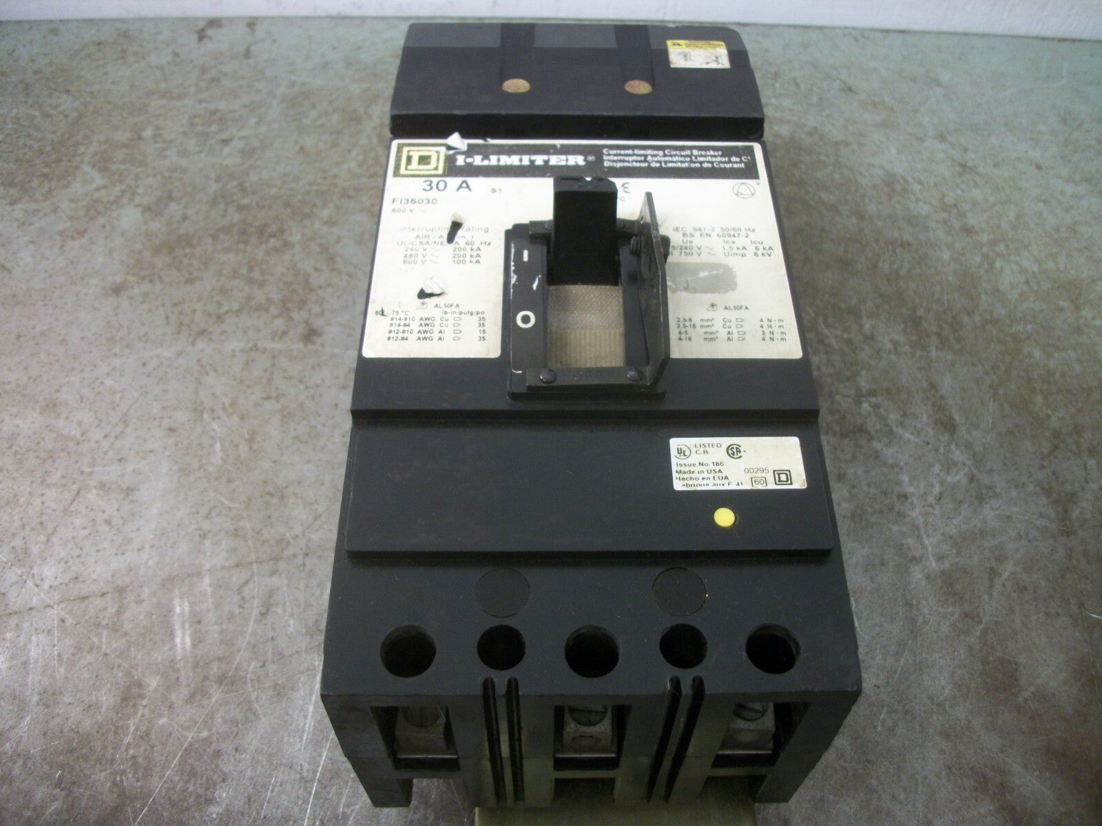 SQUARE D I-LINE I-LIMITER FI CIRCUIT BREAKER FI36030 30AMP 600VOLT 3POLE GRAY