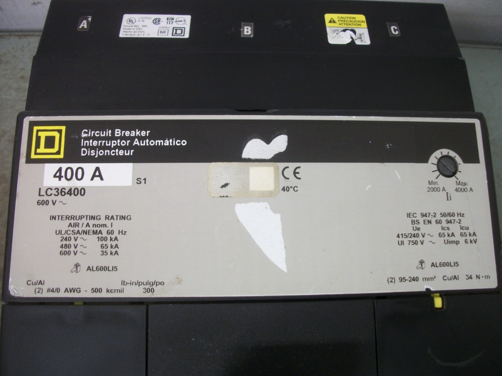 SQUARE D I-LINE LC CIRCUIT BREAKER LC36400 400AMP 600VOLT 3POLE GRAY