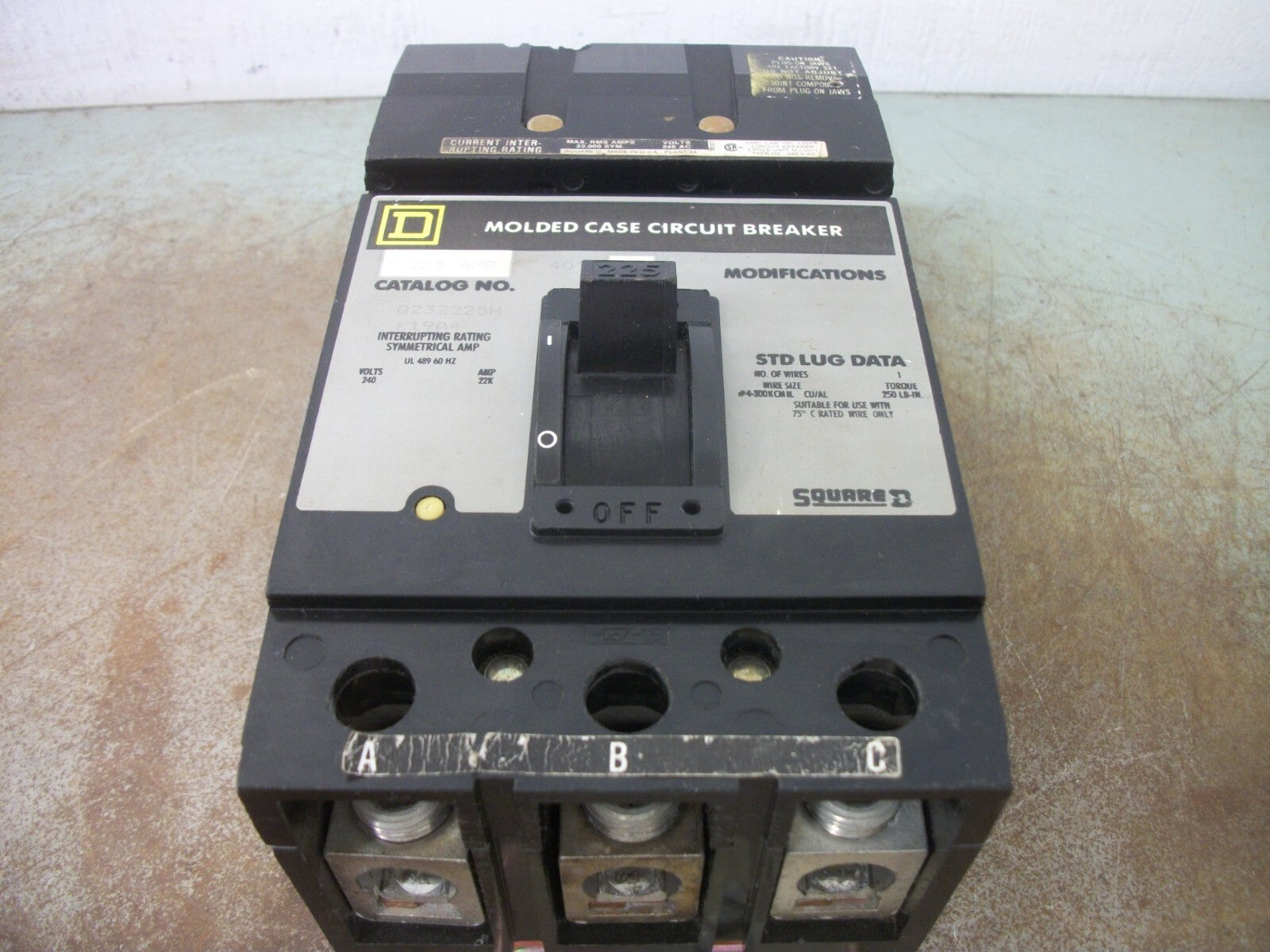 SQUARE D I-LINE Q2 CIRCUIT BREAKER Q232225H 225AMP 240VOLT 3POLE GRAY CHIPPED