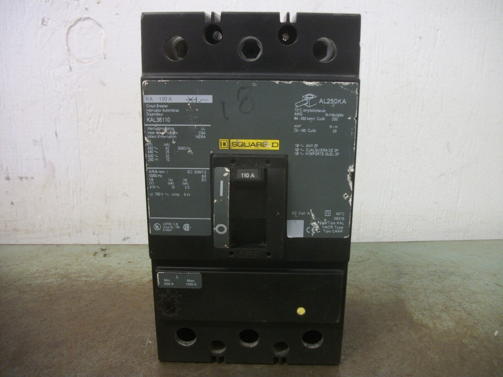 SQUARE D KAL CIRCUIT BREAKER KAL36110 110AMP 600VOLT 3POLE GREEN