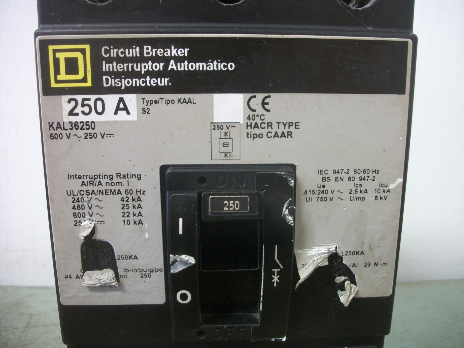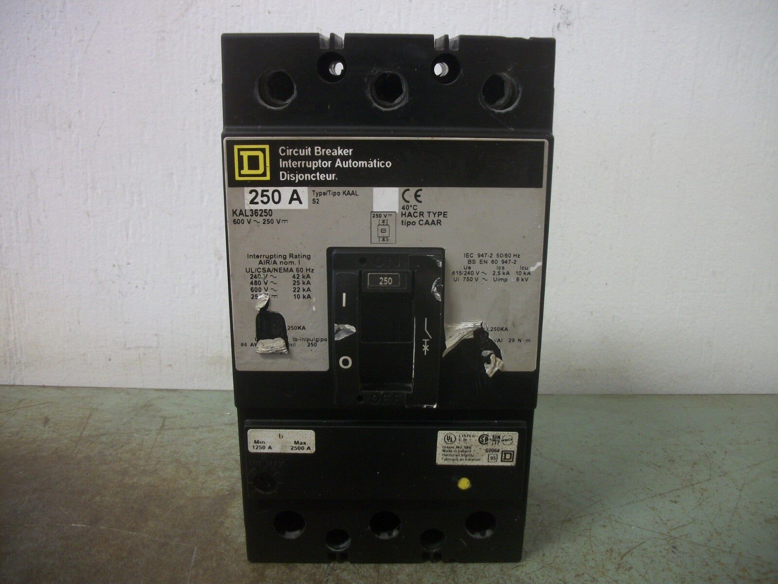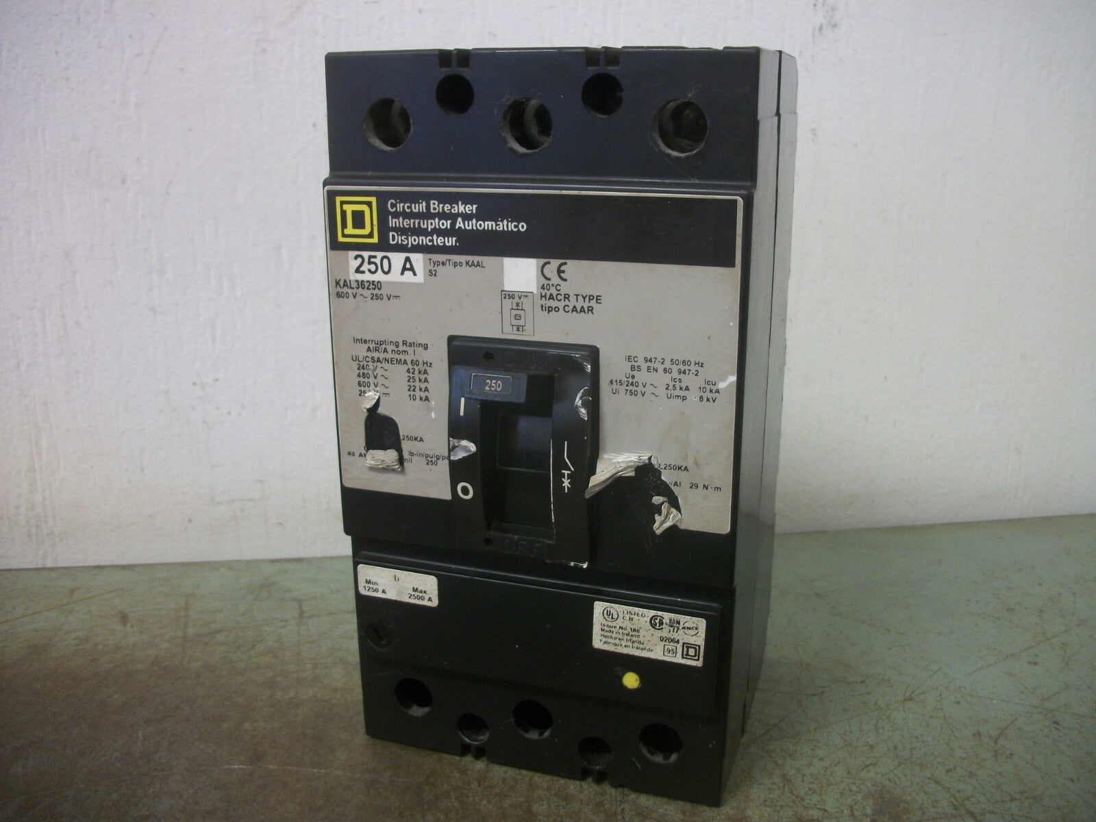 SQUARE D KAL CIRCUIT BREAKER KAL36250 250AMP 600VOLT 3POLE GRAY