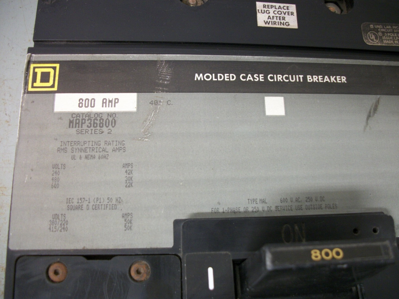 SQUARE D MAP CIRCUIT BREAKER MAP36800 800AMP 600VOLT 3POLE GRAY