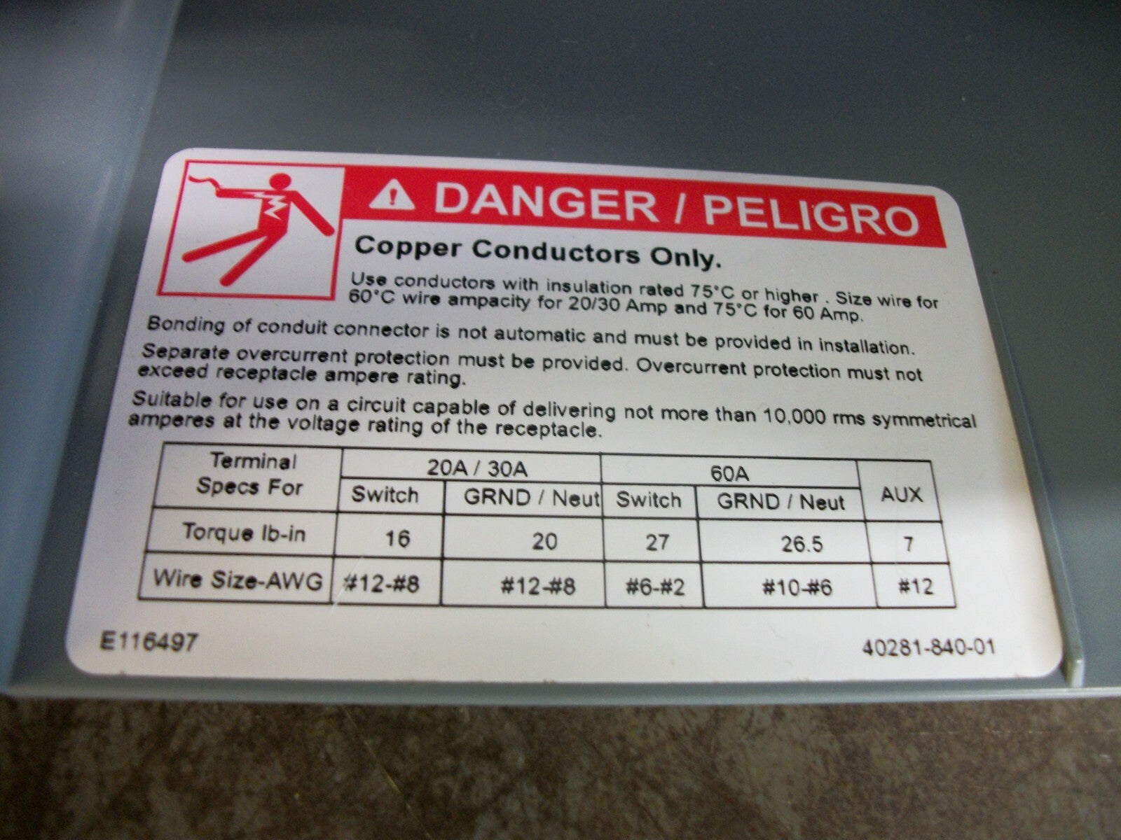 SQUARE D MD50 MOTOR DISCONNECT SWITCH TYPE 4X,12 MD560MI9 60AMP 120/208VOLT 3PH