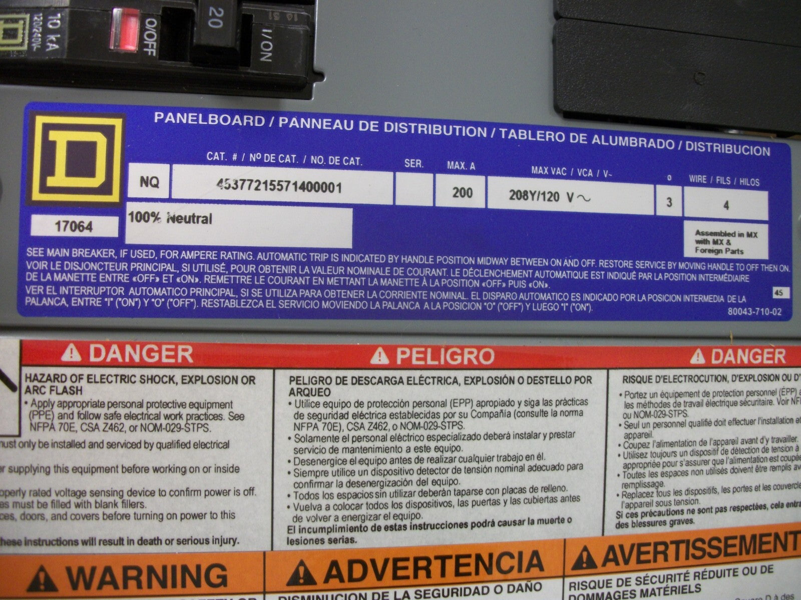 SQUARE D NQ PANELBOARD INTERIOR 45377215571400001 200A 208Y/120V 3PH 4W NIB