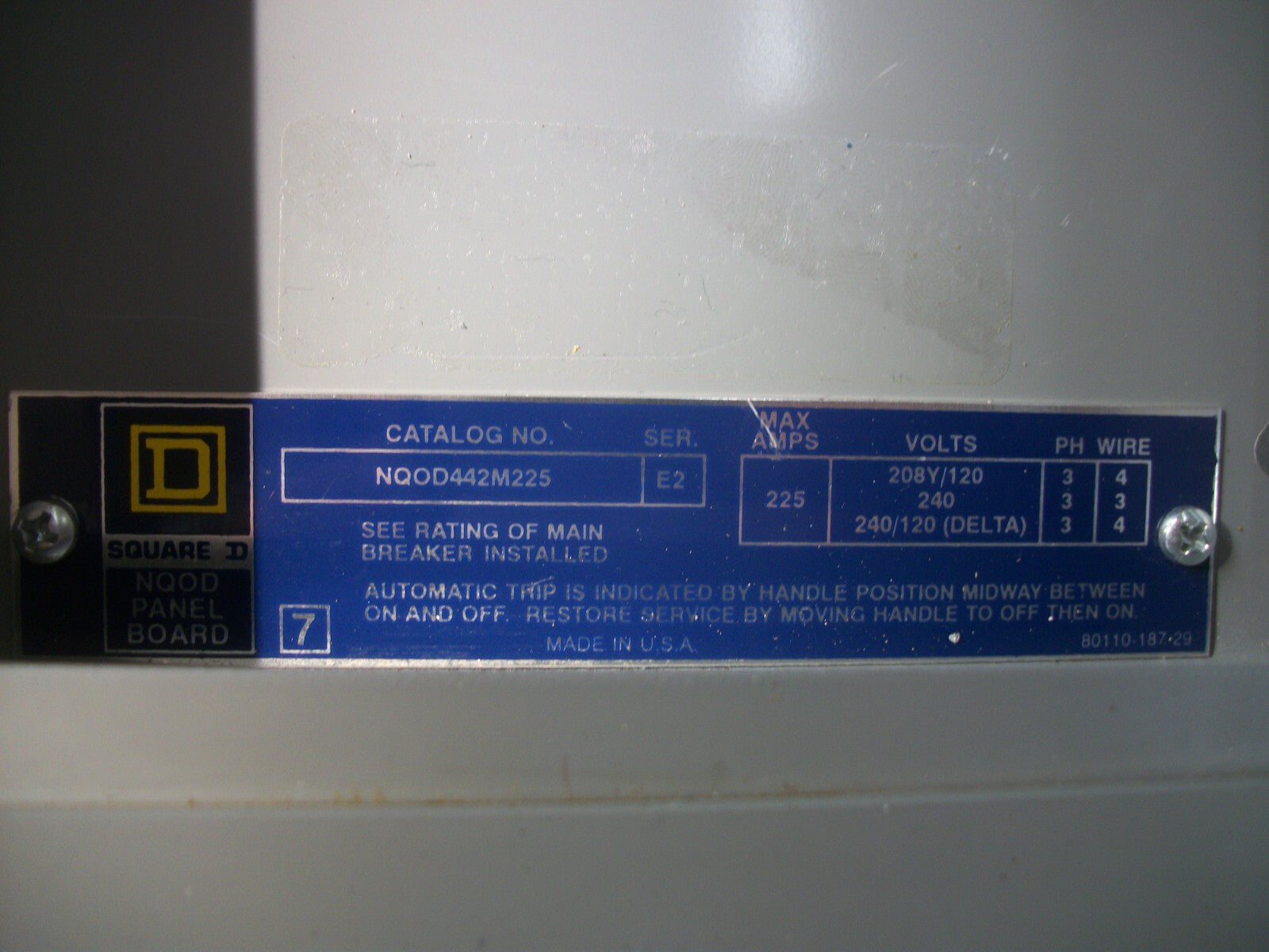 SQUARE D NQOD PANELBOARD NQOD442M225 225AMP 208Y/120/240VOLT 3PH W/200A MAIN
