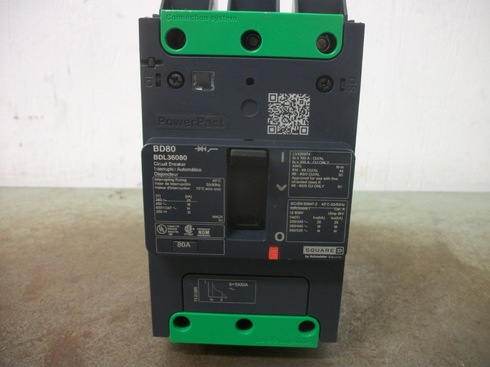 SQUARE D POWERPACT BD CIRCUIT BREAKER BDL36080 80AMP 600VOLT 3POLE