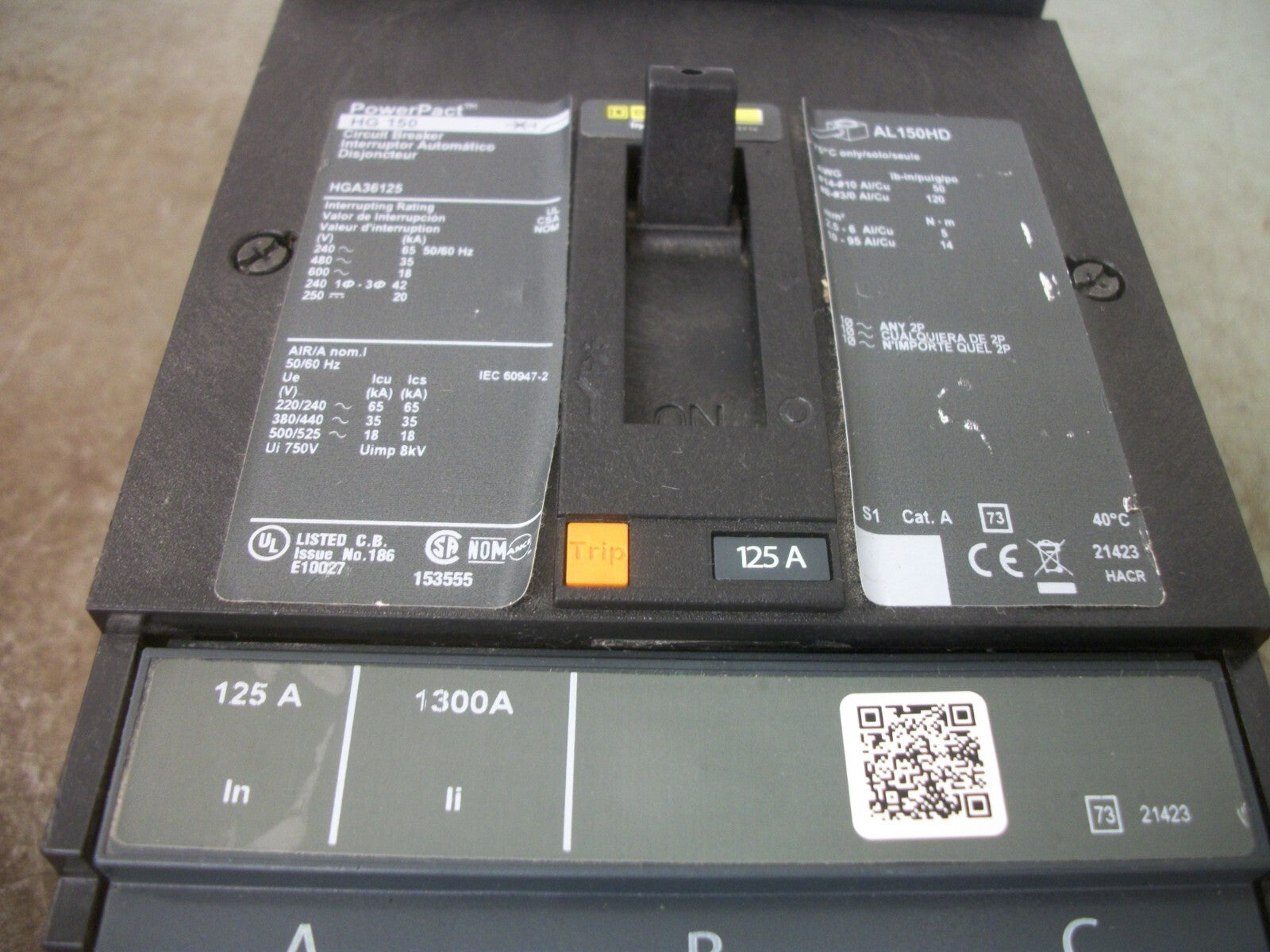 SQUARE D POWERPACT I-LINE HG CIRCUIT BREAKER HGA36125 125AMP 600VOLT 3POLE