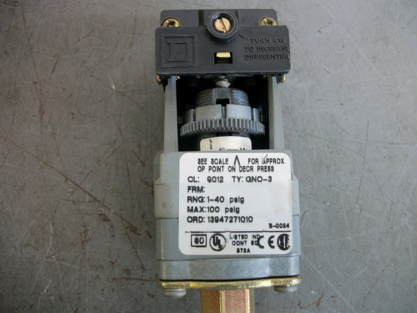 SQUARE D PRESSURE SWITCH 9012GNO3 1-40PSI RANGE 100PSI MAX