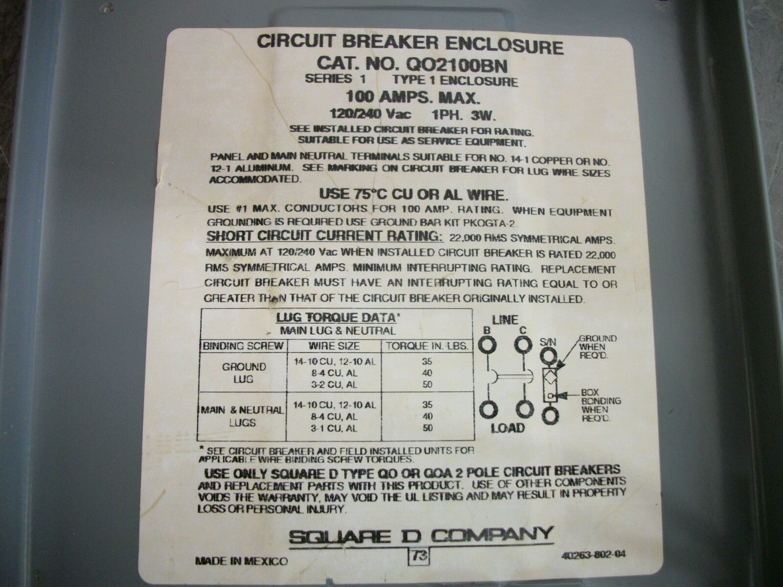 SQUARE D QO2100BN ENCL AFCI CIRCUIT BREAKER QO115CAFI 15AMP 120VOLT 1POLE