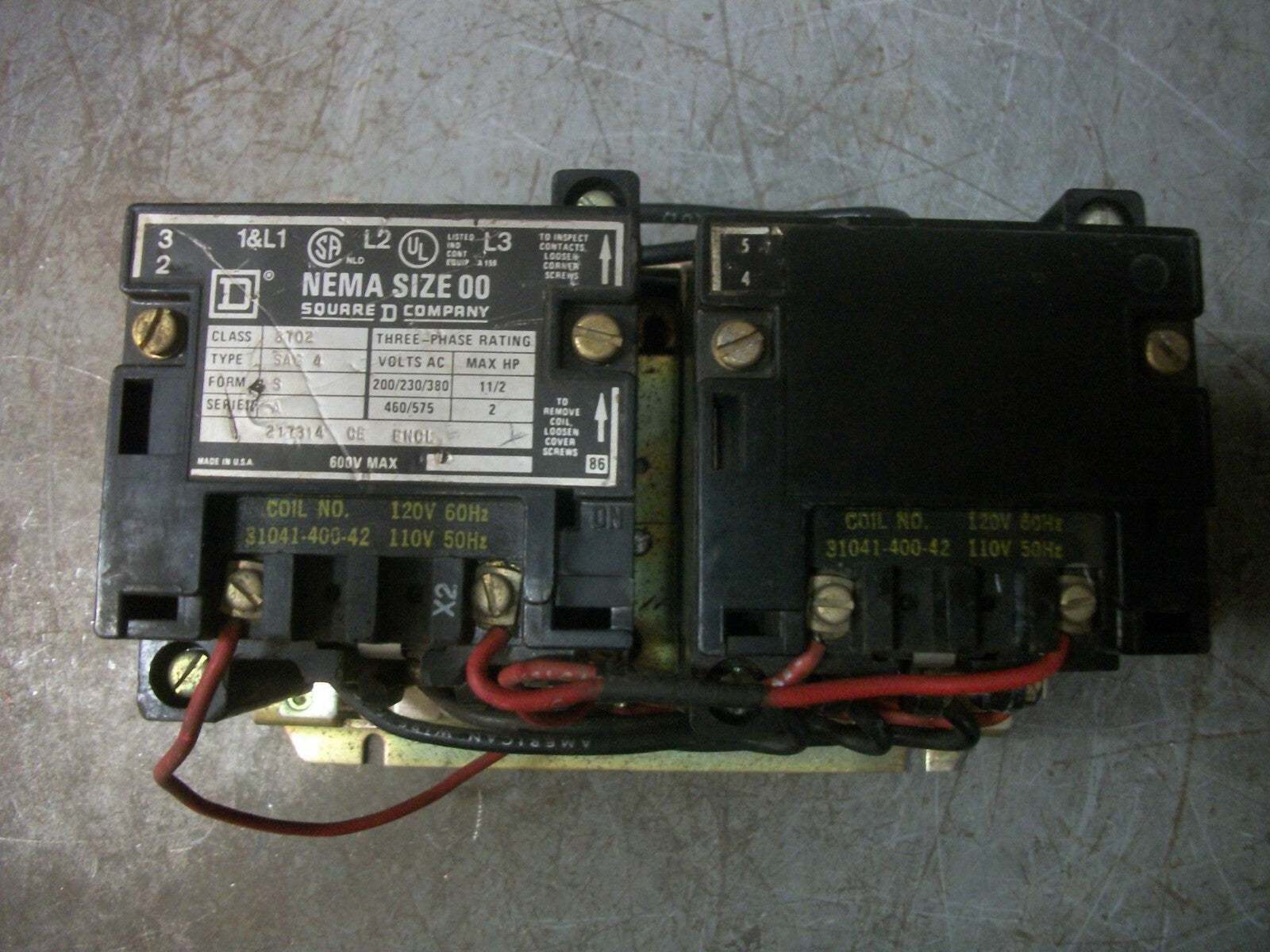 SQUARE D SIZE 00 REV CONTACTOR 8702SAG4 120VCOIL 3PH 600V 2HP