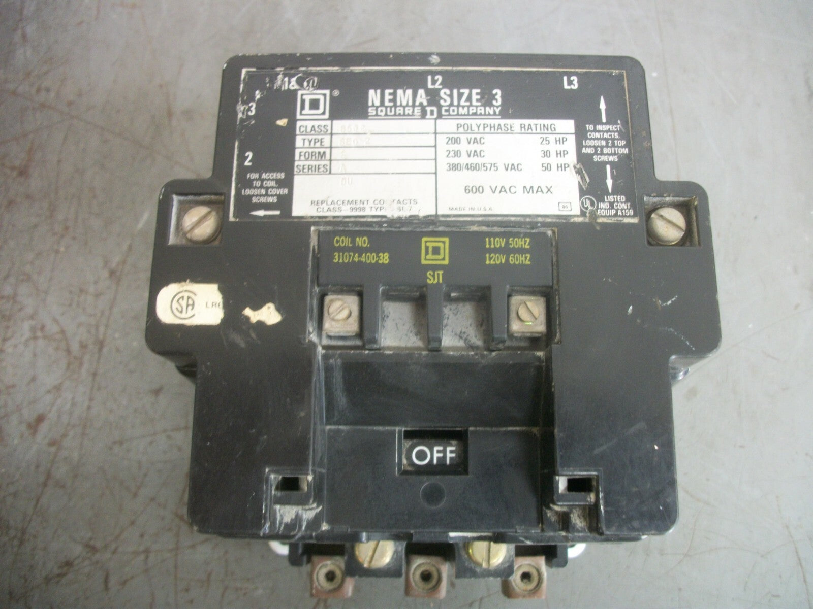SQUARE D SIZE 3 CONTACTOR 8502SEO2 120VCOIL 3PH 600V 50HP
