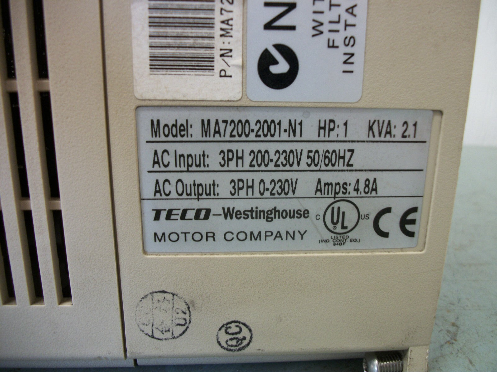 TECO MA7200 1HP ADJUSTABLE SPEED DRIVE MA7200-2001-N1 230VOLT 4.8AMP 3PH