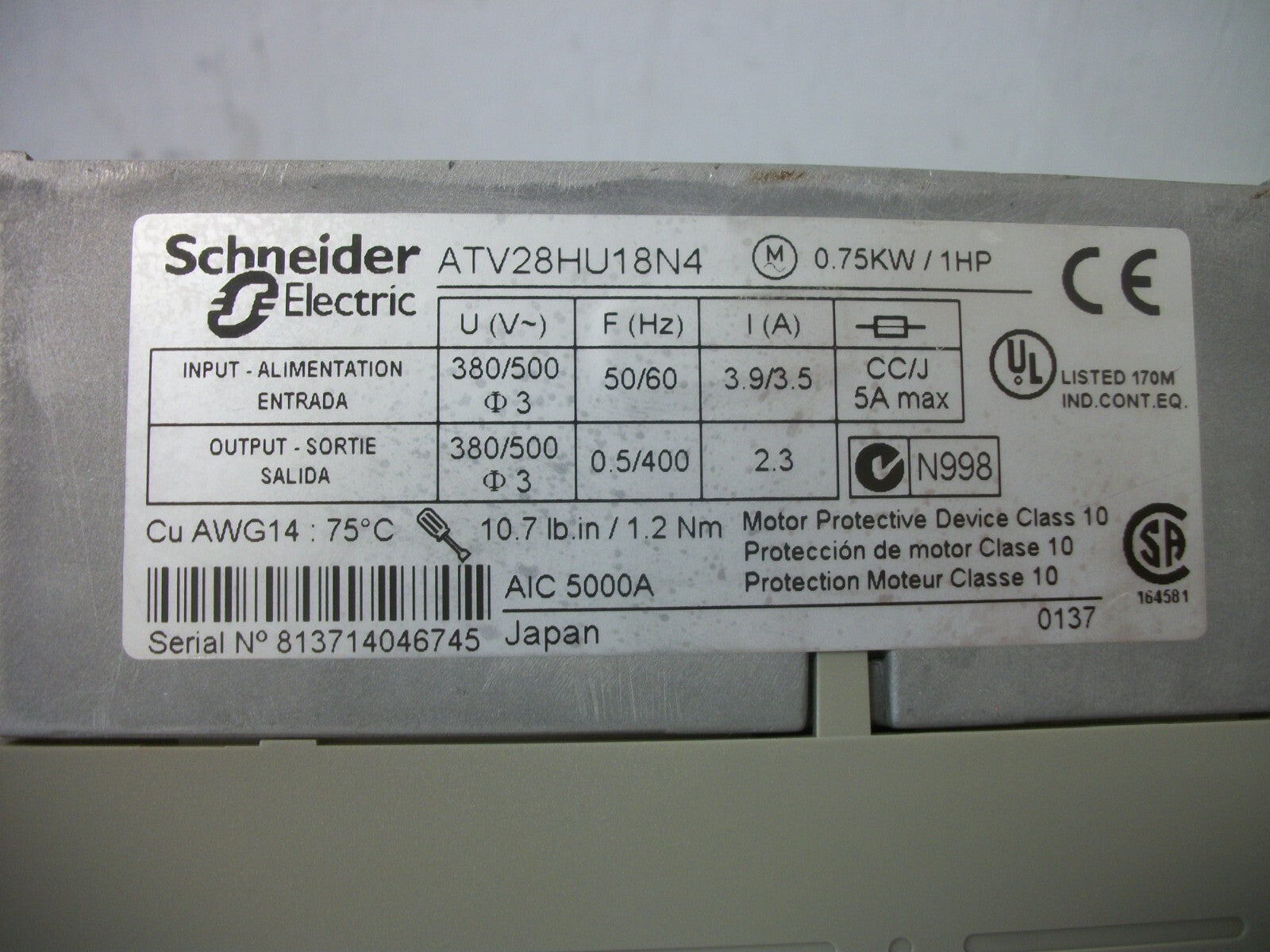 TELEMECANIQUE ALTIVAR 28 1HP AC DRIVE ATV28HU18N4 500VOLT 3PH 2.3AMP