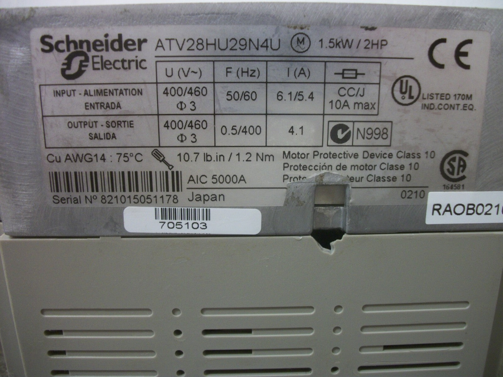 TELEMECANIQUE ALTIVAR 28 2HP ADJ SPEED DRIVE ATV28HU29N4U 460VOLT 3PH