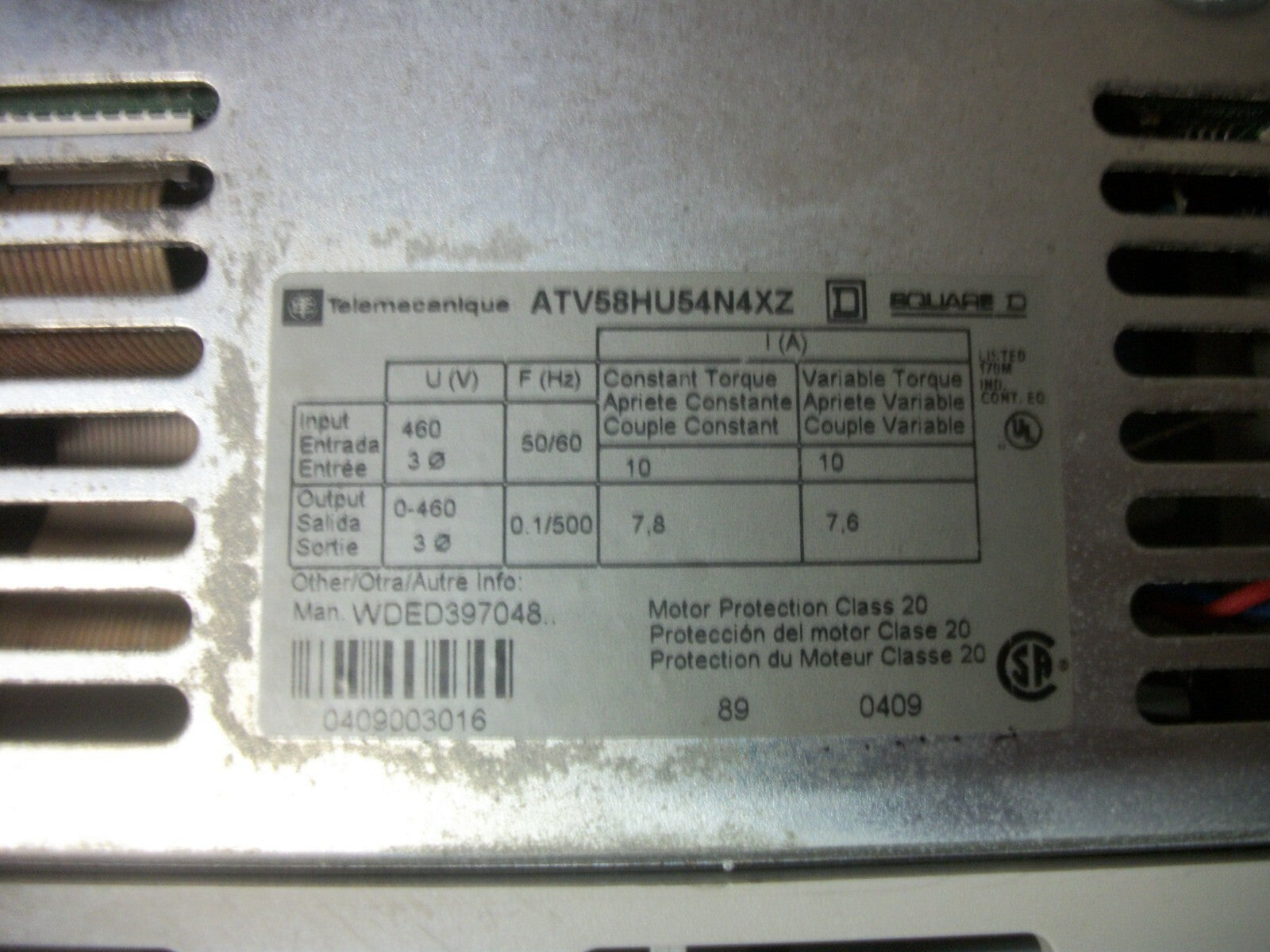 TELEMECANIQUE ALTIVAR 58 TRX AC DRIVE ATV58HU54N4XZ 460VOLT 3PH 7.8AMP