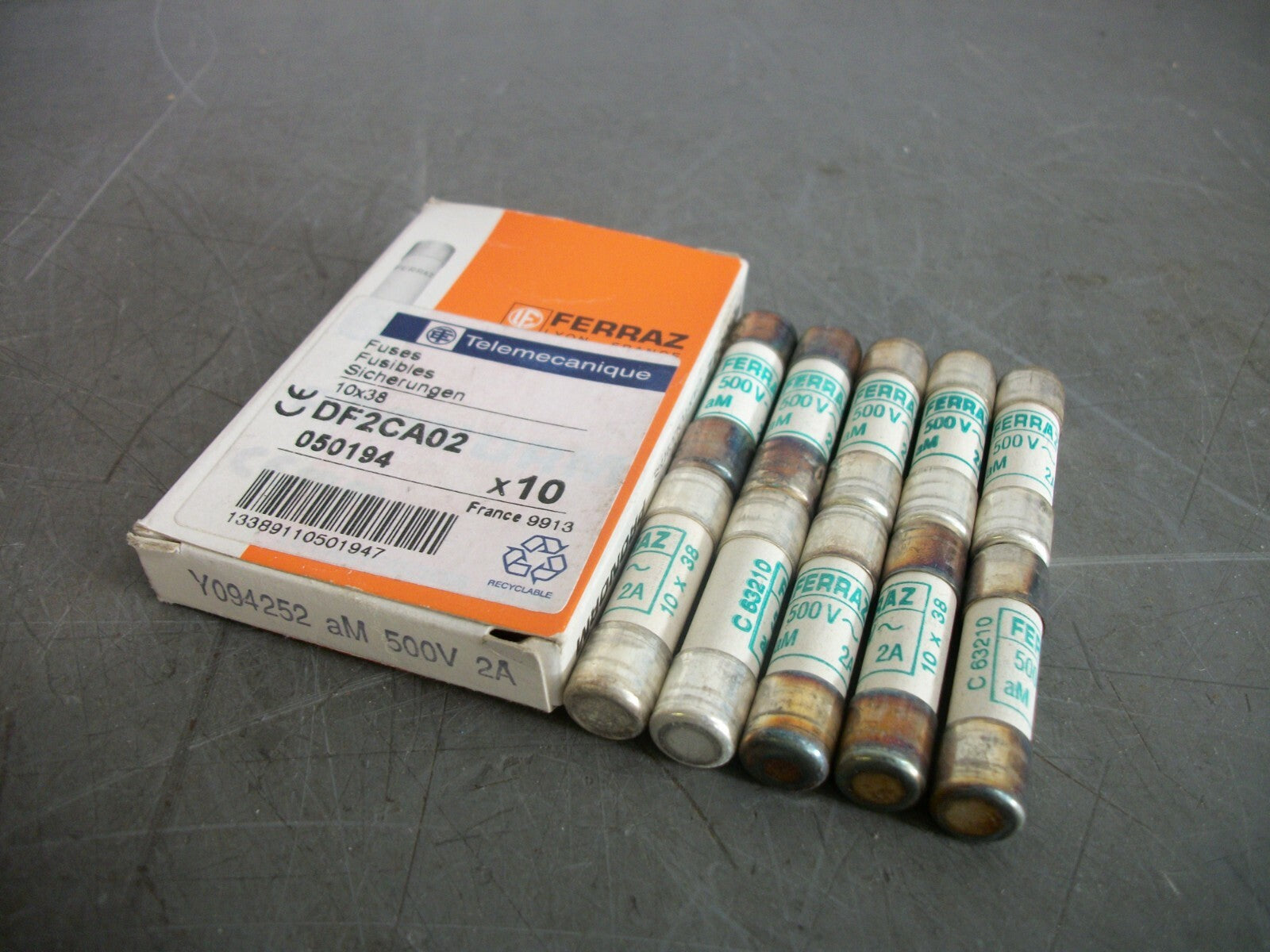 TELEMECANIQUE FERRAZ-SHAWMUT BOX OF 10 10X38 FUSES DF2CA02 2AMP 500VOLT NIB