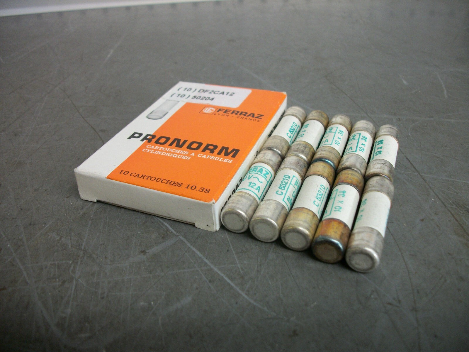 TELEMECANIQUE FERRAZ-SHAWMUT BOX OF 10 10X38 FUSES DF2CA12 12AMP 500VOLT NIB