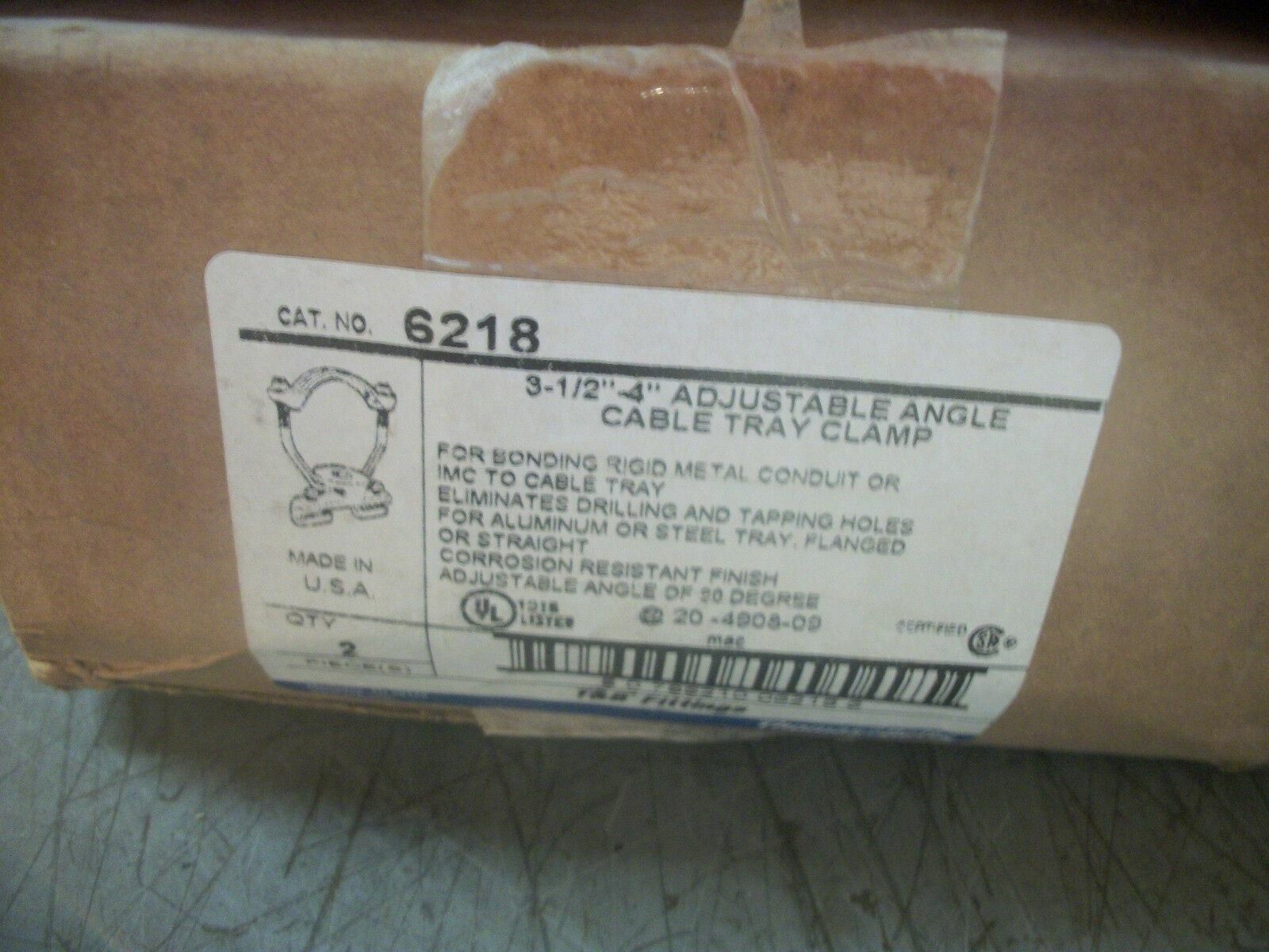 THOMAS & BETTS BOX OF 2 3-1/2" TO 4" ADJUSTABLE CABLE TRAY CLAMPS 6218 NIB
