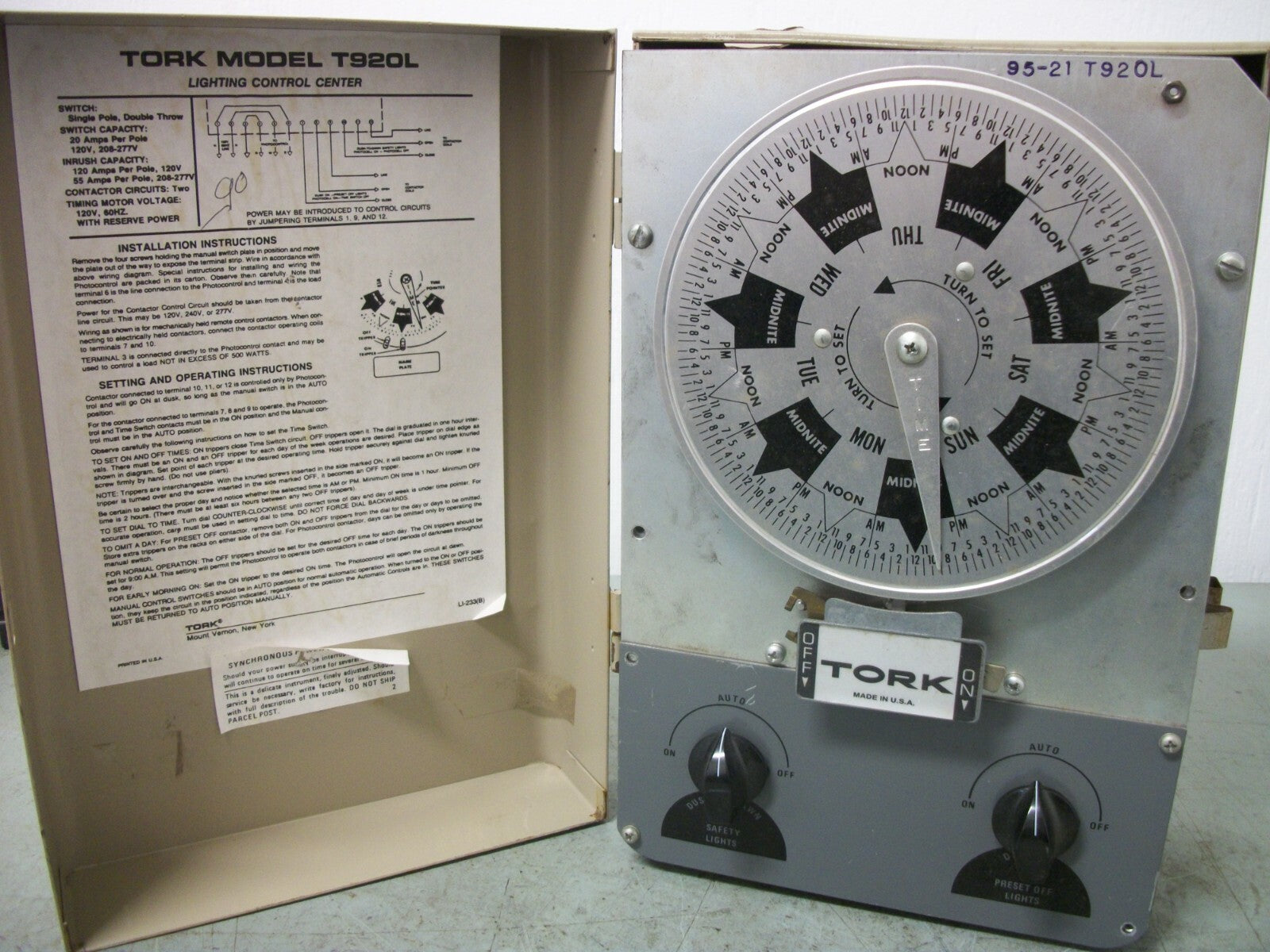 TORK SPDT 7-DAY LIGHTING CONTROL TIME SWITCH 95-21 T920L 20AMP 120/208/277VOLT