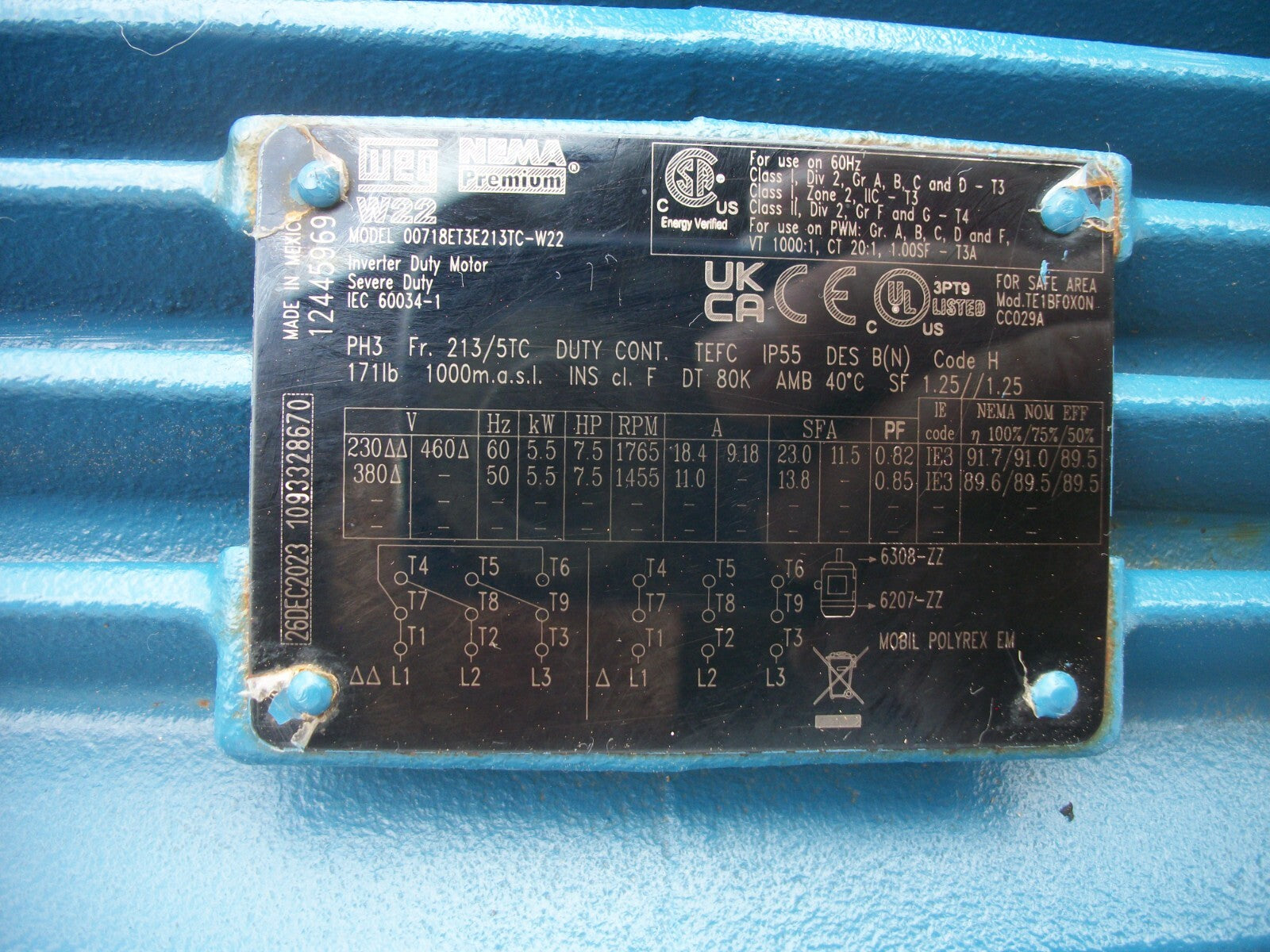 WEG 7.5HP 213/5TC TEFC AC MOTOR 00718ET3E213TC-W22 460VOLT 3PH 1765RPM NOB