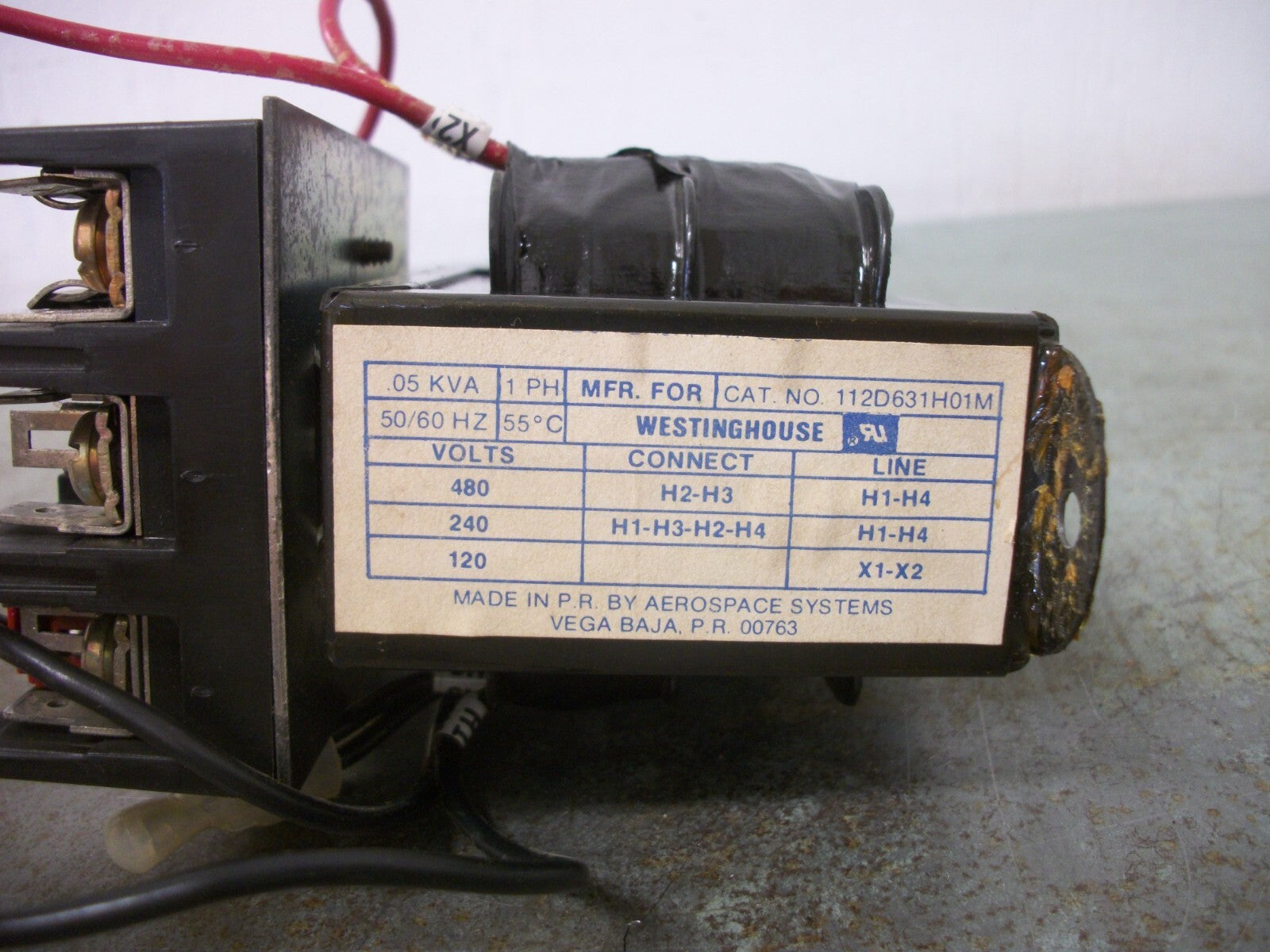 WESTINGHOUSE .05KVA 1PH TRANSFORMER 112D631H01M HV 240X480 LV 120