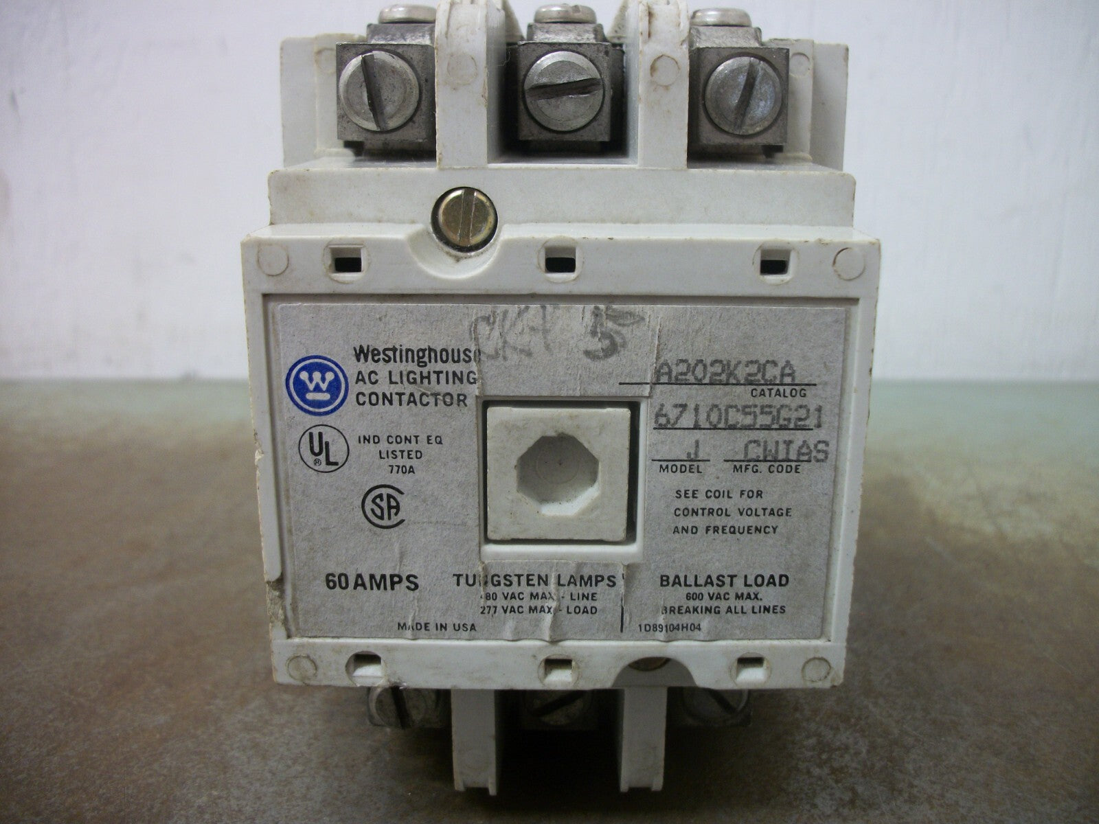 WESTINGHOUSE 60AMP LIGHTING CONTACTOR A202K2CA 120VCOIL