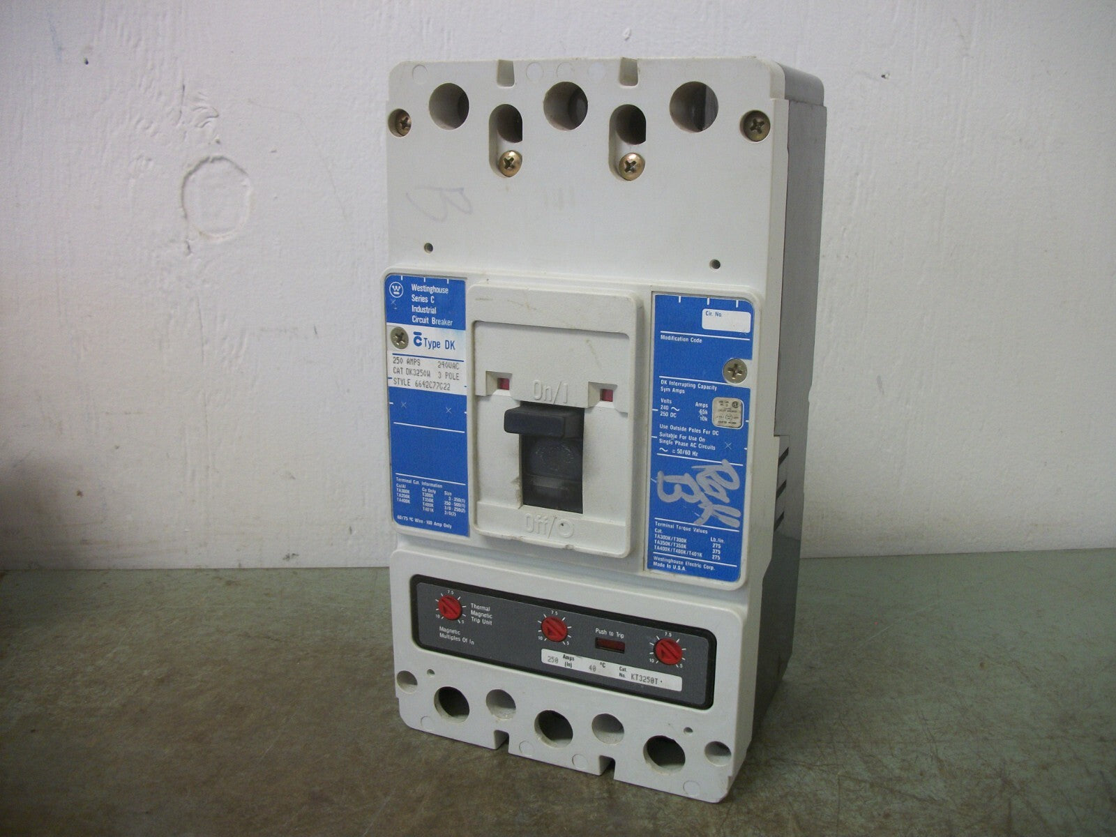 WESTINGHOUSE DK CIRCUIT BREAKER DK3250W 250AMP 240VOLT 3POLE BLUE W/250A TRIP