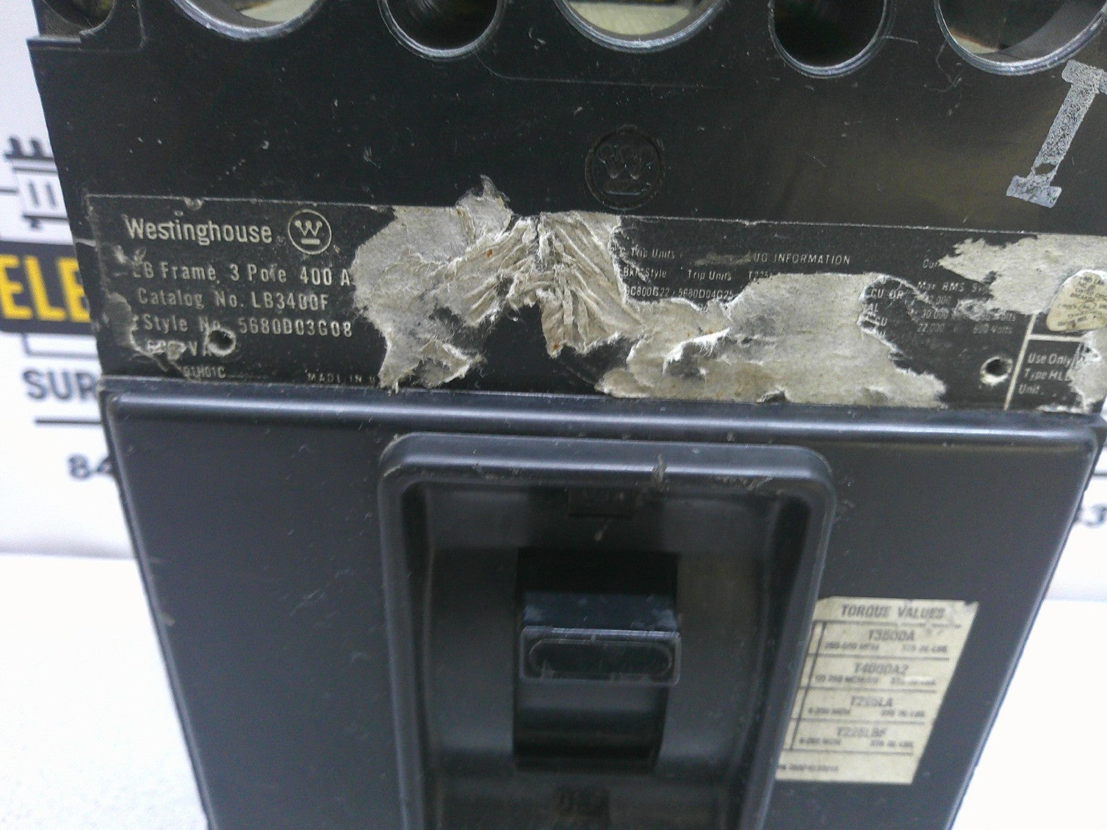 WESTINGHOUSE LB CIRCUIT BREAKER LB3400F 400AMP 600VOLT 3POLE W/300A TRIP