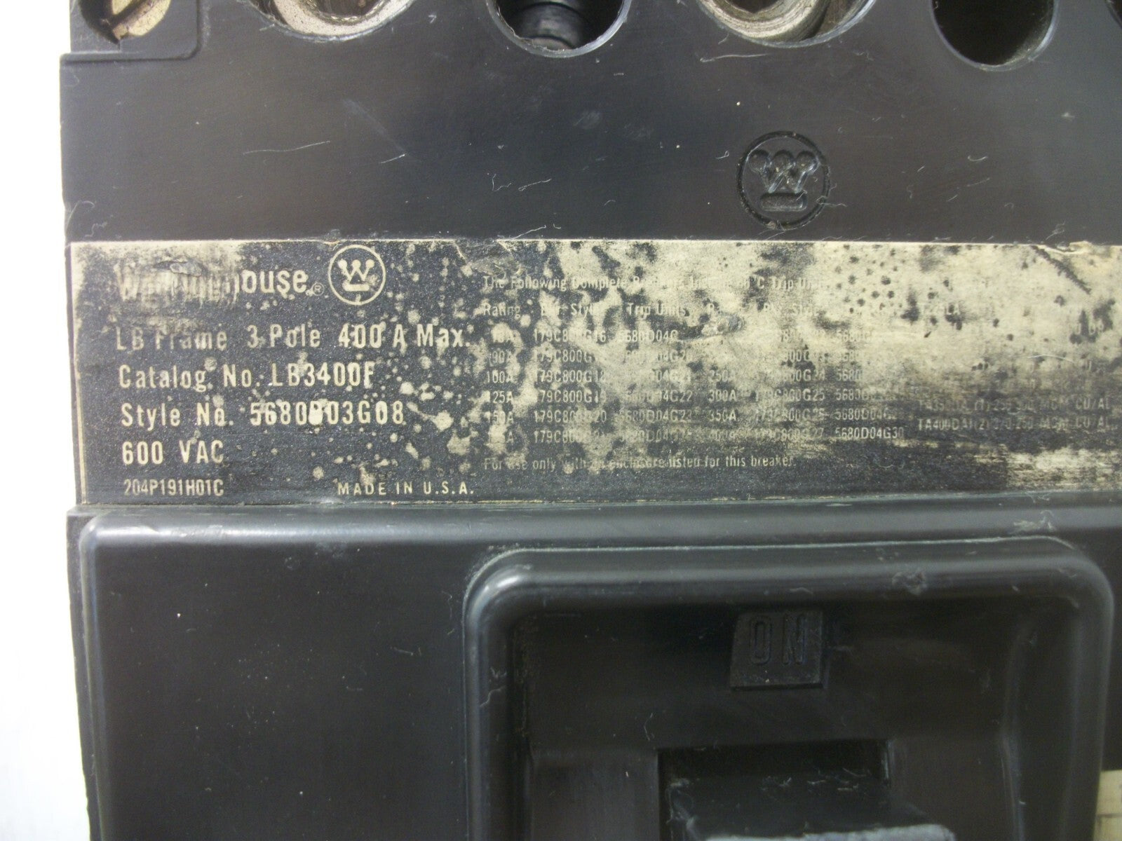 WESTINGHOUSE LB CIRCUIT BREAKER LB3400F 400AMP 600VOLT 3POLE W/350A TRIP & AUX