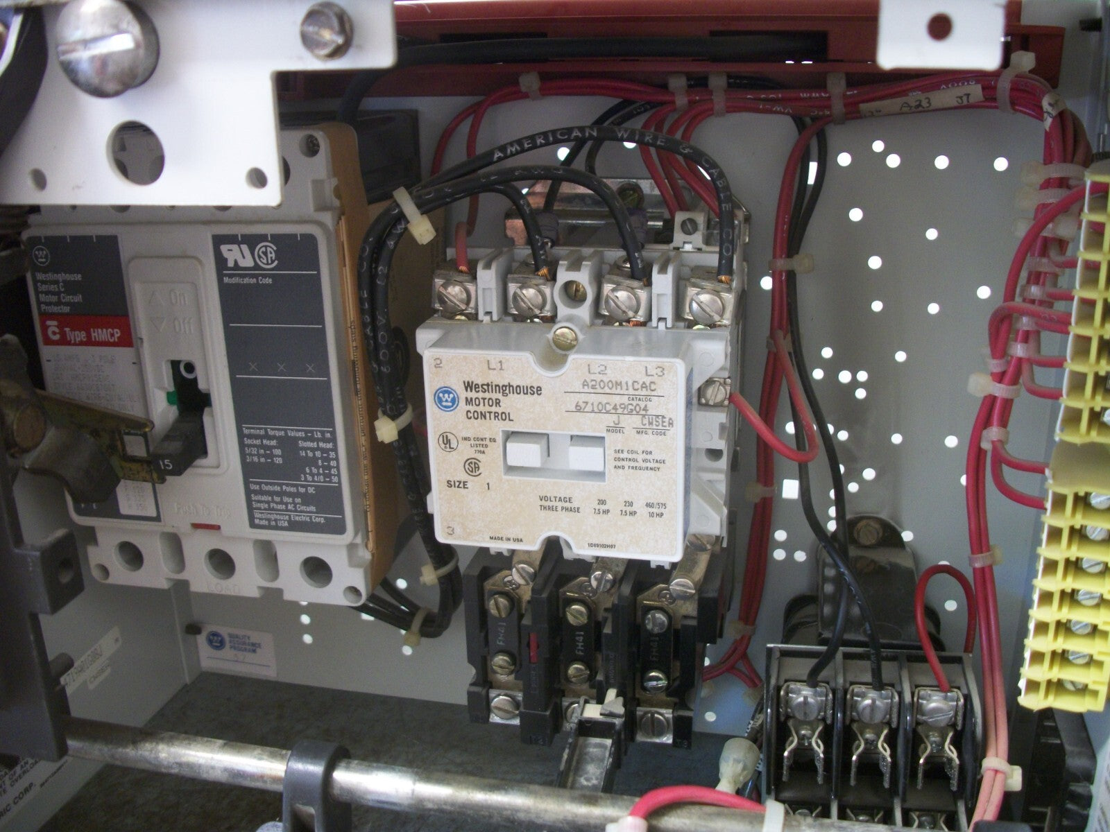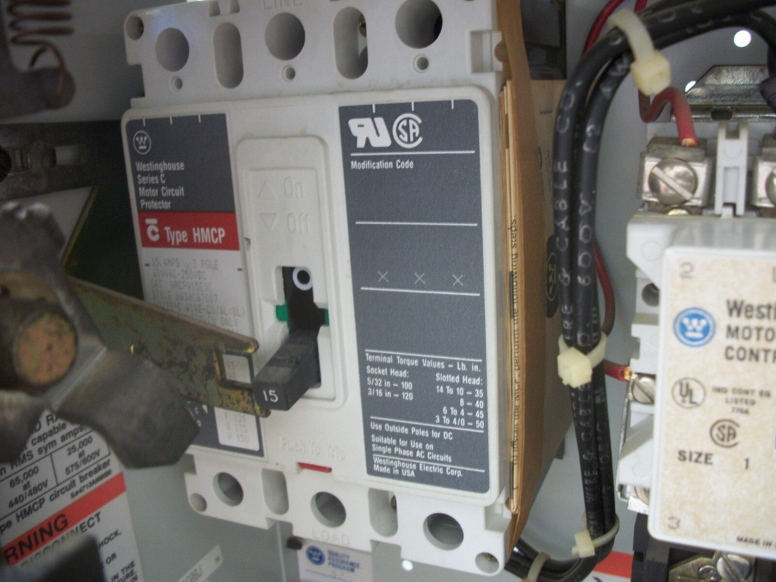 WESTINGHOUSE MCC STARTER BUCKET SIZE 1 A200M1CAC 120VCOIL 15AMP BREAKER