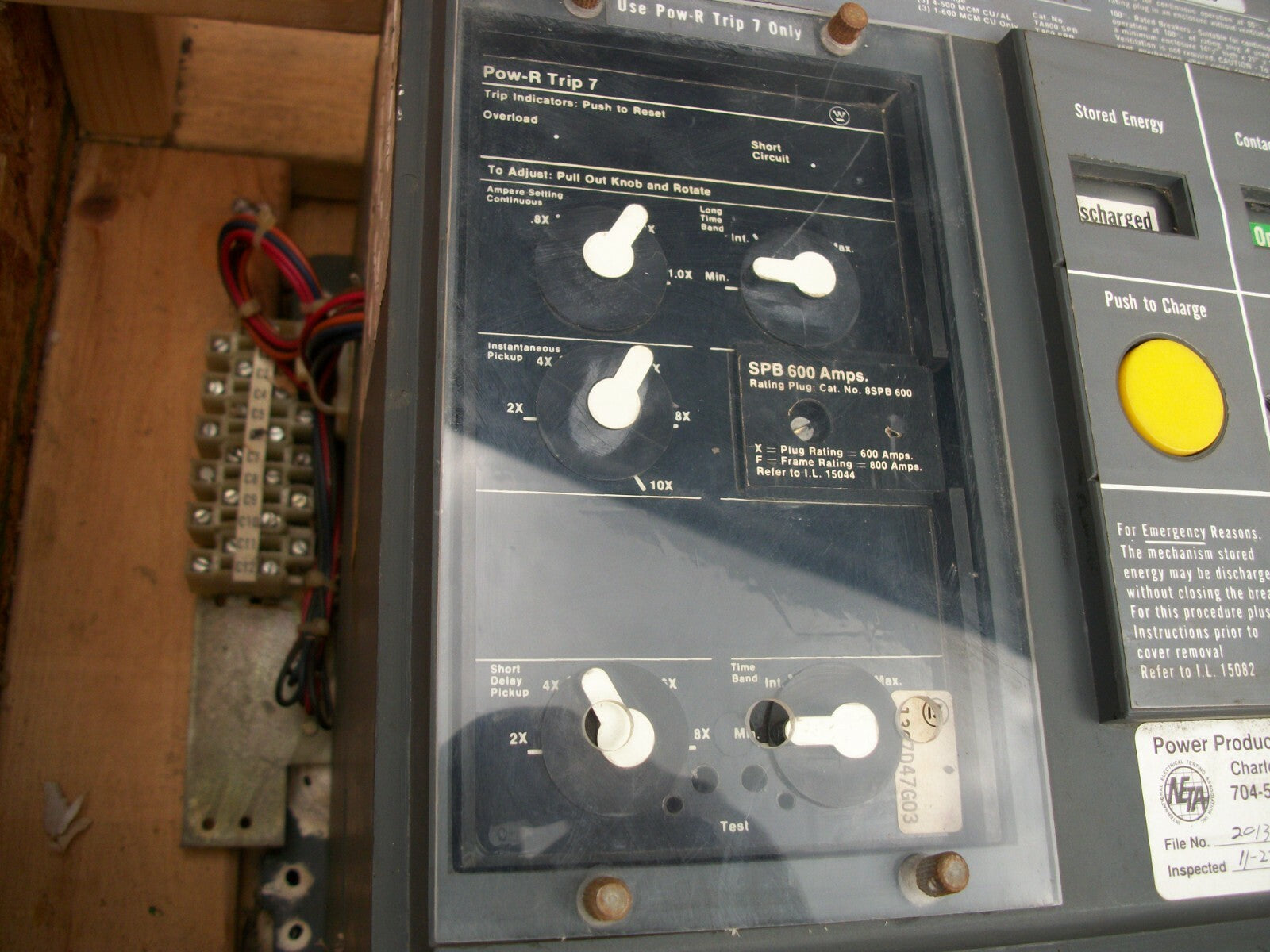 WESTINGHOUSE SPB 50 POW-R-BREAKER 800AMP 600VOLT 3POLE W/600A TRIP & SHUNT