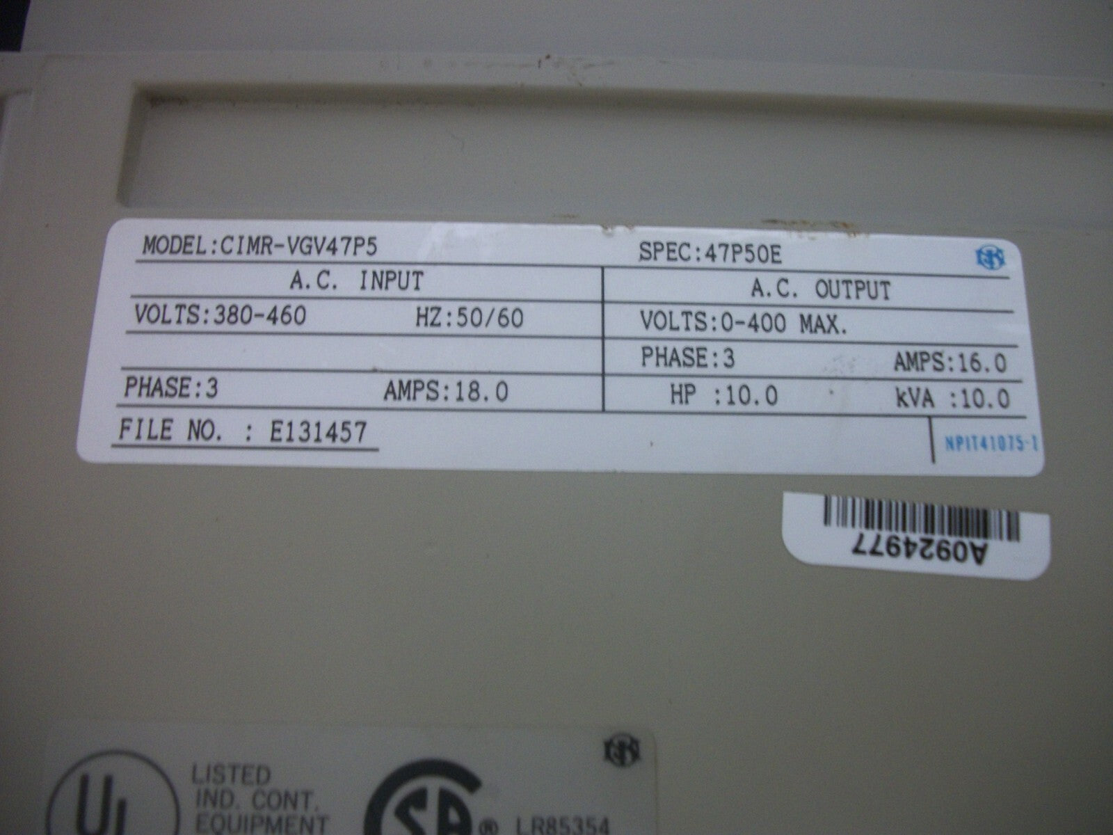YASKAWA 10HP VARIABLE FREQUENCY DRIVE CIMR-VGV47P5 460VOLT 3PH 10KVA
