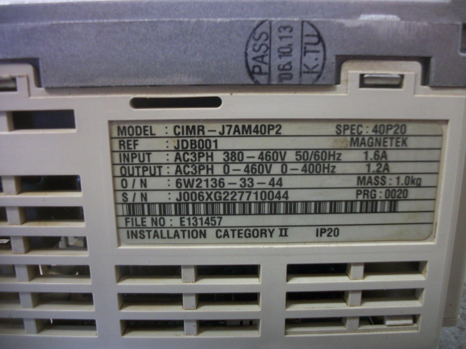 YASKAWA GPD 305/J7 0.2KW INVERTER DRIVE CIMR-J7AM40P2 460VOLT 3PH 1.2AMP