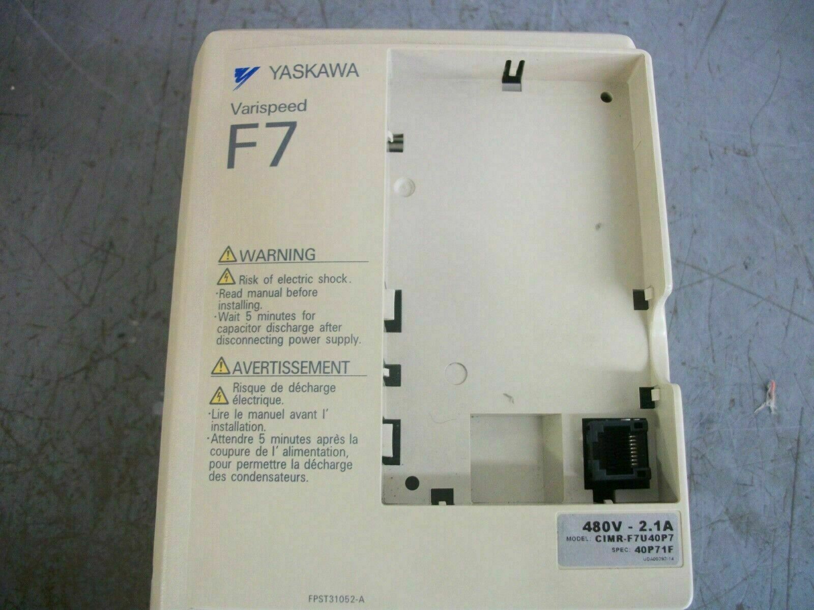 YASKAWA VARISPEED F7 1.6KVA AC DRIVE CIMR-F7U40P7 3PH 480VOLT 2.1AMP NO KEYPAD